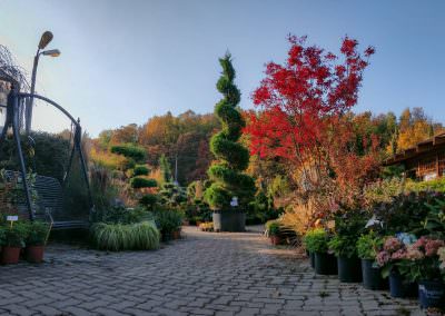 Nálunk megtalálja a fák, cserjék, örökzöldek, bonsai formára nyírt óriás növények, sövénynövények, virágok, vízi és vízparti növények mellett, a kerámia, műanyag cserepek, virágföldek, növénytápok, műtrágyák, kerti bútorok, öntöző berendezések, kerti dekorációk, rózsakapuk széles választékát.